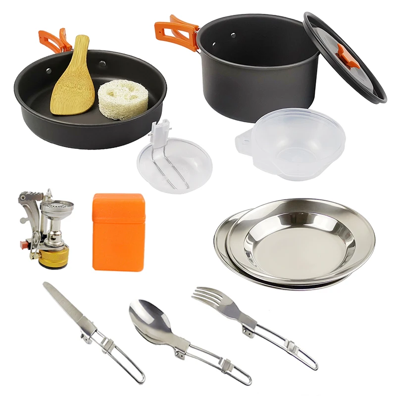Outdoor Camping Cookware Set Marching Utensils Tableware Cooking Stove Kit Travel Pan Hiking Picnic